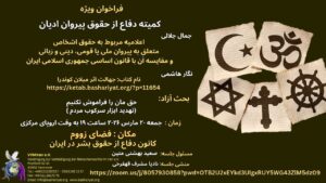 گزارش صوتی و تصویری جلسه سخنرانى مشترك كميته دفاع ازحقوق پیروان ادیان و کمیته دفاع از حقوق اقوام و ملل ایرانی در تاریخ چهارشنبه ۲۵ فوریه ۲۰۲۶ – کانون دفاع از حقوق بشر در ایران